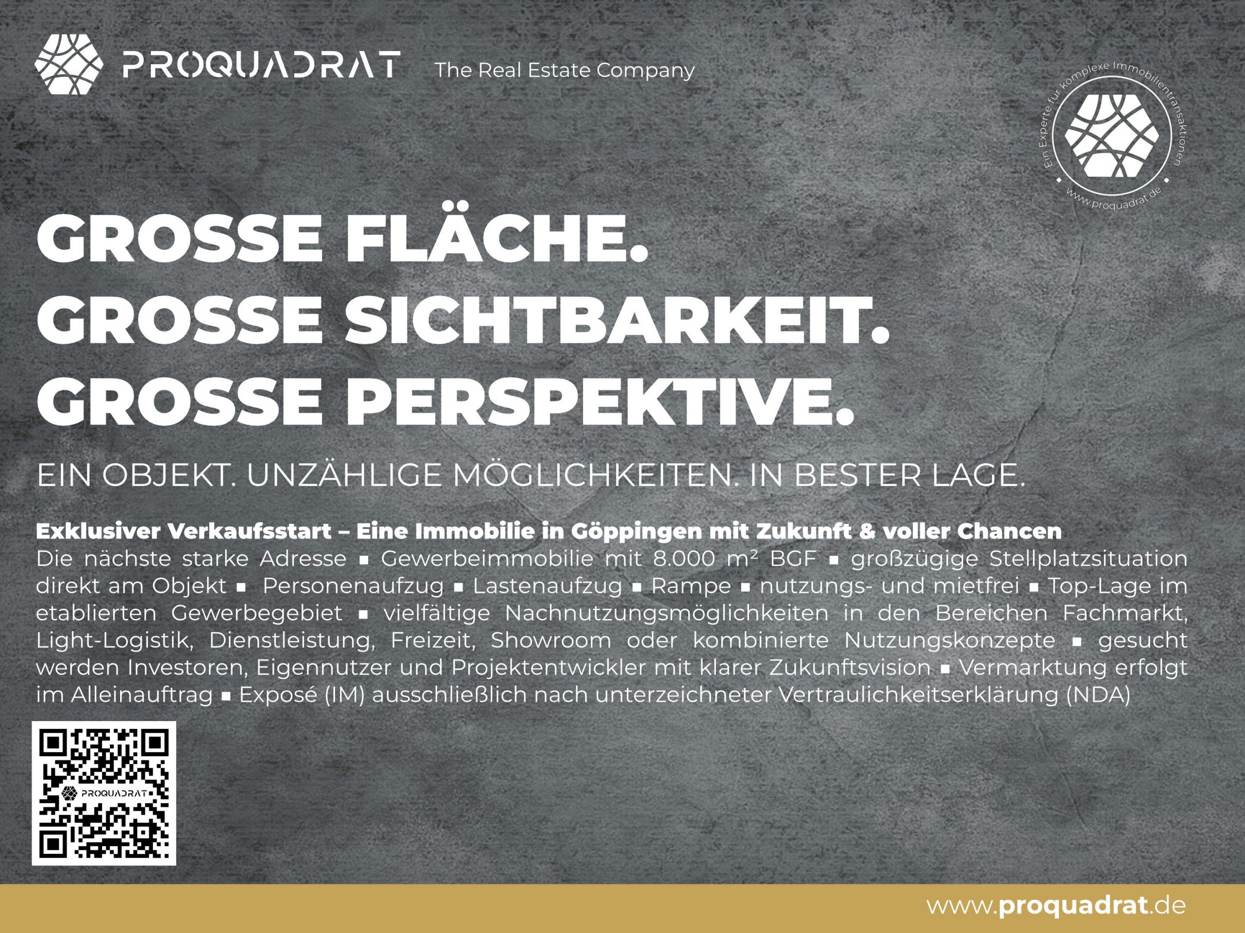 Der neue Alleinauftrag unterstreicht die Positionierung von PROQUADRAT als spezialisierter Partner für bundesweite Mandate in unterschiedlichen Assetklassen. Bereits heute zeigt sich, dass PROQUADRAT mit seinem Mandatsbestand und der breiten Marktansprache hervorragend für das Jahr 2026 aufgestellt ist – sowohl im Bereich Bestandsimmobilien als auch bei Entwicklungs- und Transformationsprojekten.
